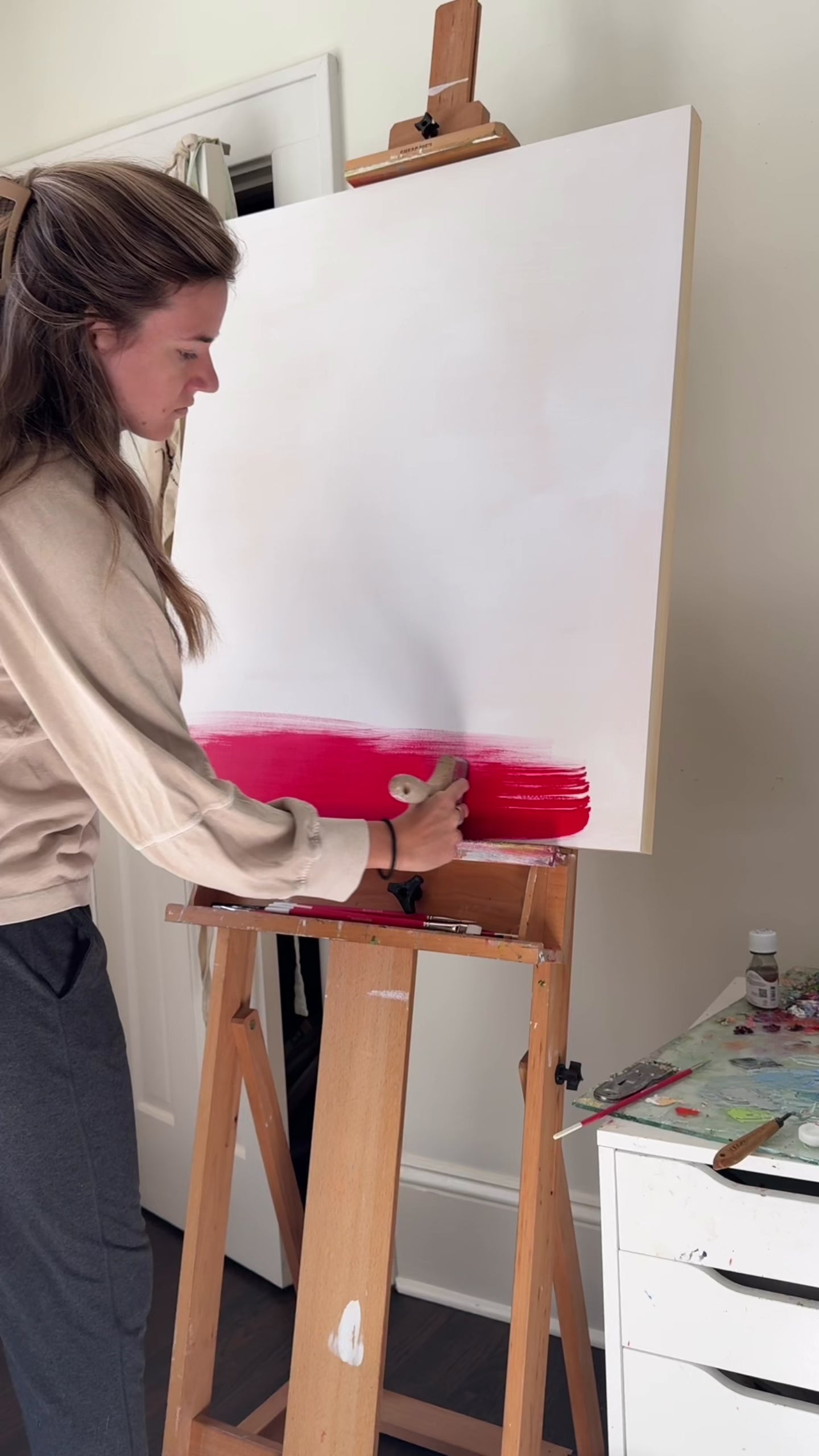 This work is an original 30x36" oil painting on wood panel. This piece comes signed with the sides painted white. The price includes shipping within the US.
