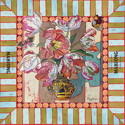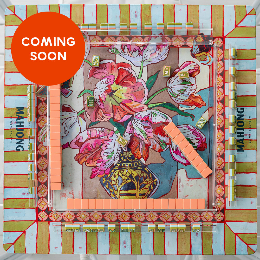 This durable mat features one of Mary Benson’s original paintings, with a non-slip backing and stitched edges for extra durability. It’s designed to protect your tiles and table, while creating a more beautiful place to play Mahjong!
