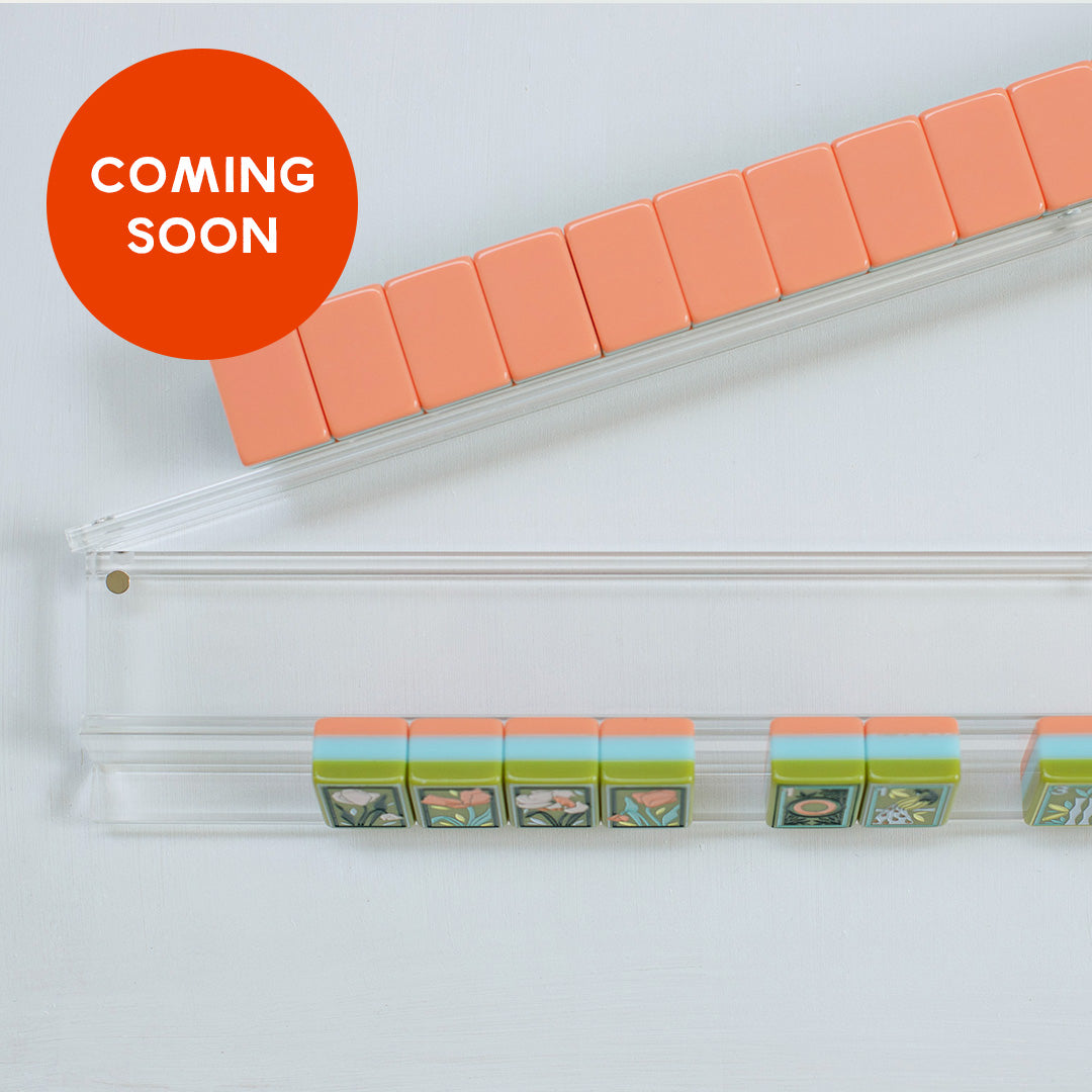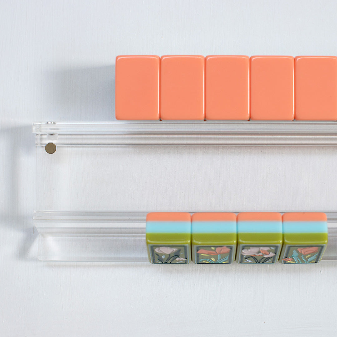 This sturdy acrylic Mahjong rack features a detachable magnetic pusher for easy tile movement. Its clear design allows the artwork on your mat to shine through. Each set comes with 4 racks and pushers.